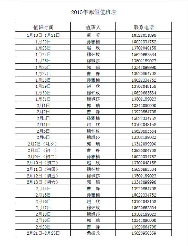 商学院2016年寒假假期就业服务值班表