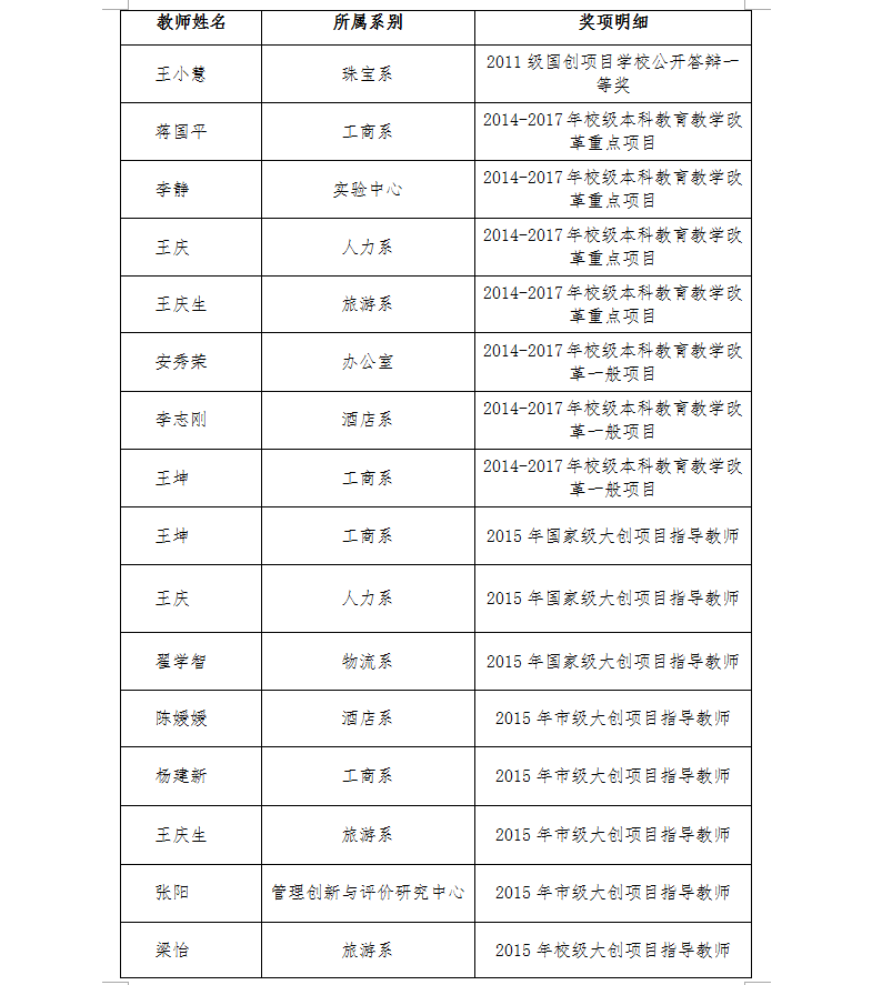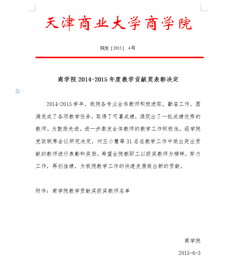 商学院2014-2015年度教学贡献奖表彰决定