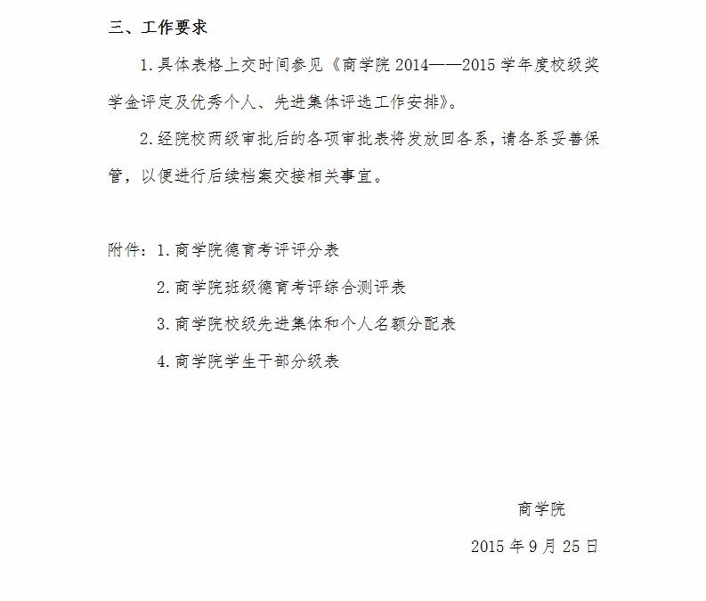 附件1:商学院德育考评评分表附件2:商学院班级德育考评综合测评表附件3:商学院优生优干名额分配表附件4:商学院学生干部分级表