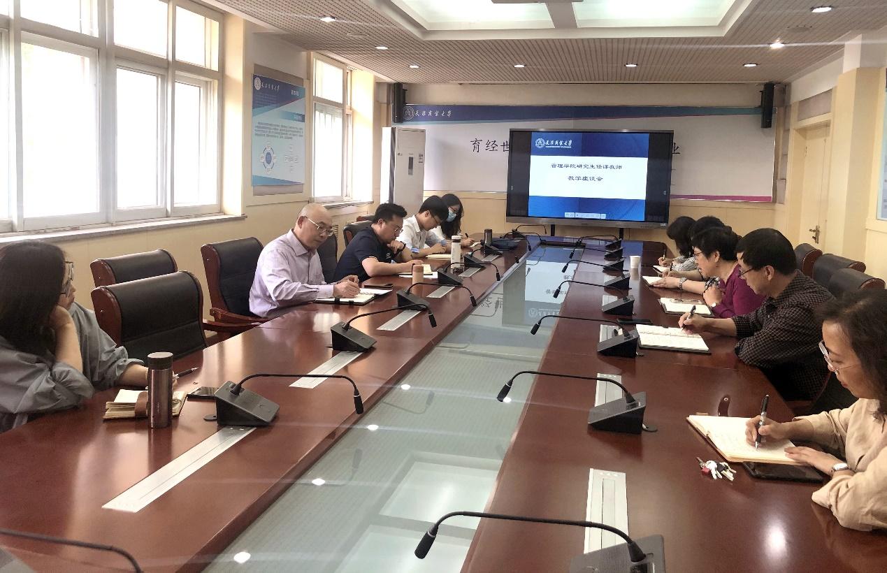 会上,李耘涛首先传达了关于研究生期中教学检查工作要求,鼓励大家积极为提高研究生培养质量建言献策。白洪文书记强调,要全面贯彻落实全国研究生教育会议精神,按照学校对研究生教育培养的总体部署,结合学院学科发展方向,注重凝练学科、专业特色,实现学科特色发展,提升研究生培养质量。王庆生院长指出,研究生教学应注重基础理论与学术前沿的结合,充分挖掘研究生课程思政元素,做好课程思政建设,要求教师们加强与学生的互动交流,跟进学生的学术进展。与会教师纷纷发言,结合自己在指导学生、课堂授课中的经验和体会,就研究生授课、研究生指导、学术氛围、管理制度等多方面进行了深入的交流探讨。