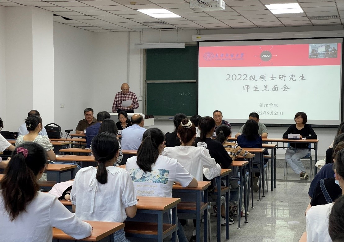 2022级硕士研究生线上线下见面会在图书馆107隆重举行。学院党委书记庞文生,党委副书记、院长王庆生,副院长、MBA教育中心主任李耘涛,副院长王艳芝,党委副书记、纪委书记沈洁, MBA教育中心副主任杨建新出席。2022级全体硕士生导师和硕士研究生参加。MBA教育中心副主任杨建新教授主持会议。