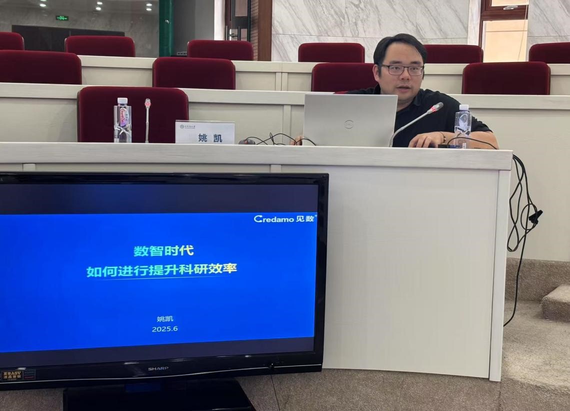 邀请中央财经大学副教授、Credamo(见数)创始人姚凯,围绕“数智时代如何提升科研效率”主题开展学术讲座。副院长王艳芝、青年骨干教师以及研究生代表共计40余人参加。