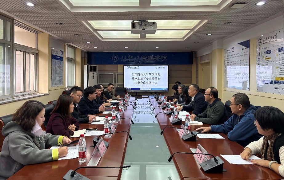 王庆院长和庞文生书记首先对天津宝玉石专业委员会各位主任、委员的莅临表示热烈欢迎,详细介绍了学校及学院在历史沿革、学科建设、师资力量等方面的整体情况,重点阐述了宝石及材料工艺学专业依托学院多学科交叉融合的优势,在人才培养模式、校企合作项目等方面形成的特色。白文涛主任、刘树霖副主任及陈泽津、宁卓两位委员,就天津宝玉石专业委员会的发展历程与现状进行介绍,并围绕合作方向、资源对接等交流需求做了说明。