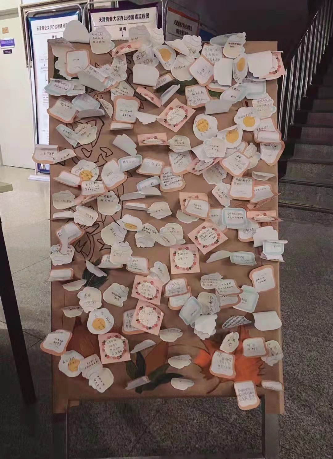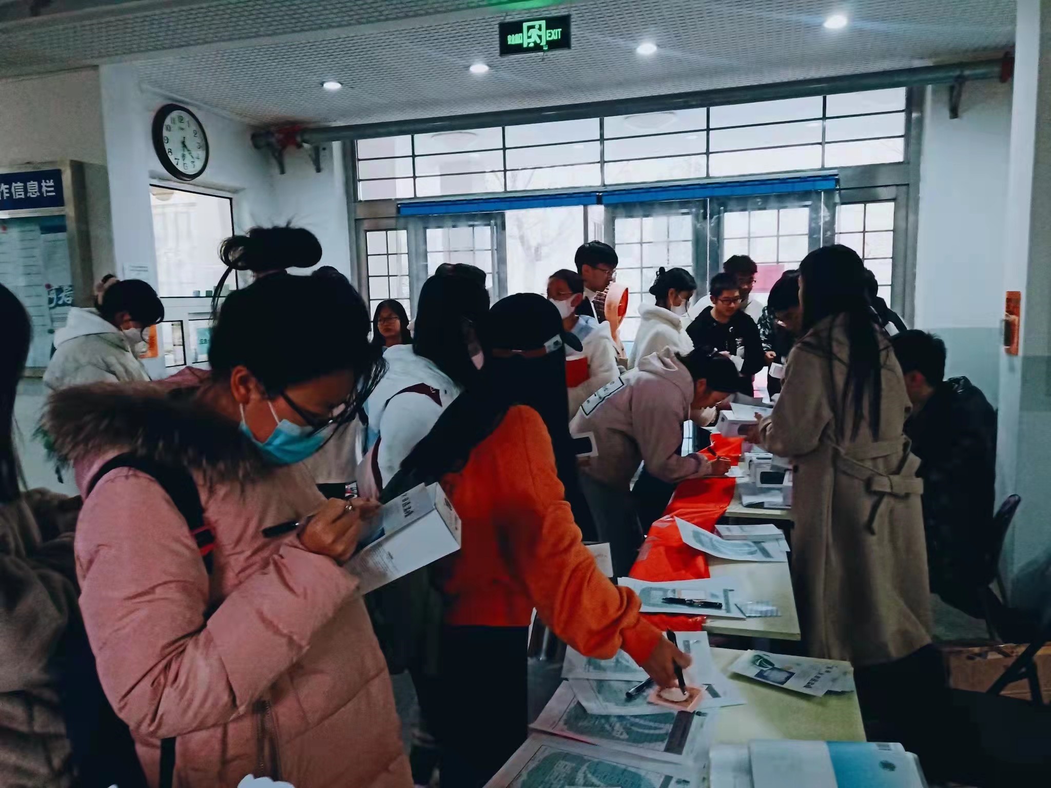 7日上午,云帆社负责人员早早来到了管院一楼大厅,布置活动所需设备,上午9:00,活动正式开始,同学们纷纷前来领取物资与卡片,并对学校的关心表达感谢。