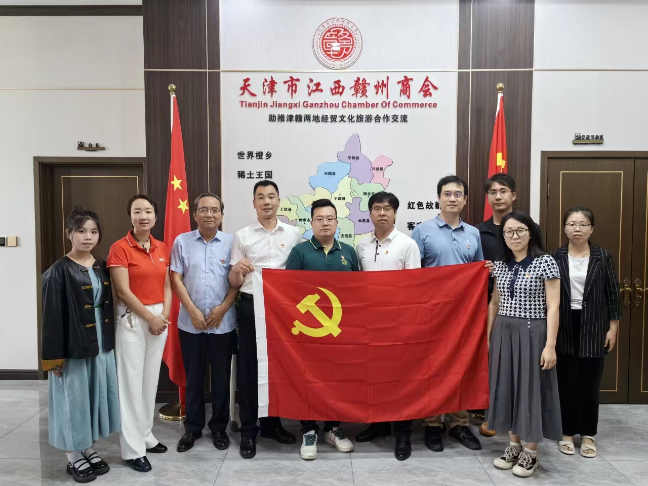 酒店物流系教师党支部教师前往天津赣州商会,同天津市江西赣州商会党支部共同开展庆“七一”座谈交流活动。